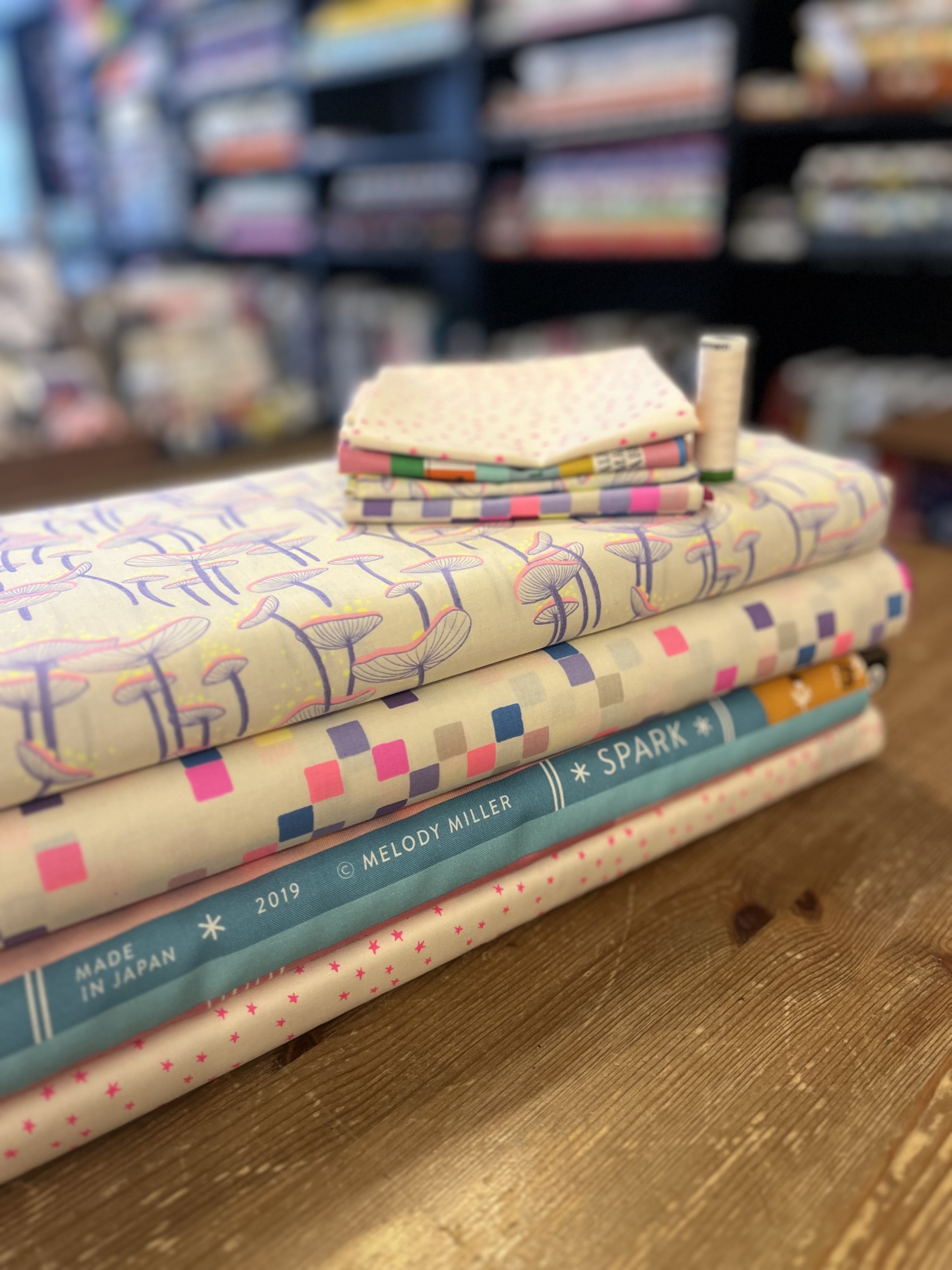 SKU: RS glow garden squares Categories: Fabric, Prints Tags: birds, blue ribbon, cotton, floral, Glow garden, goldenrod, mushrooms, neon, parchment, pink, Rashida Coleman-Hale, ruby star society, sarah watts, squares, teal, Woodland park