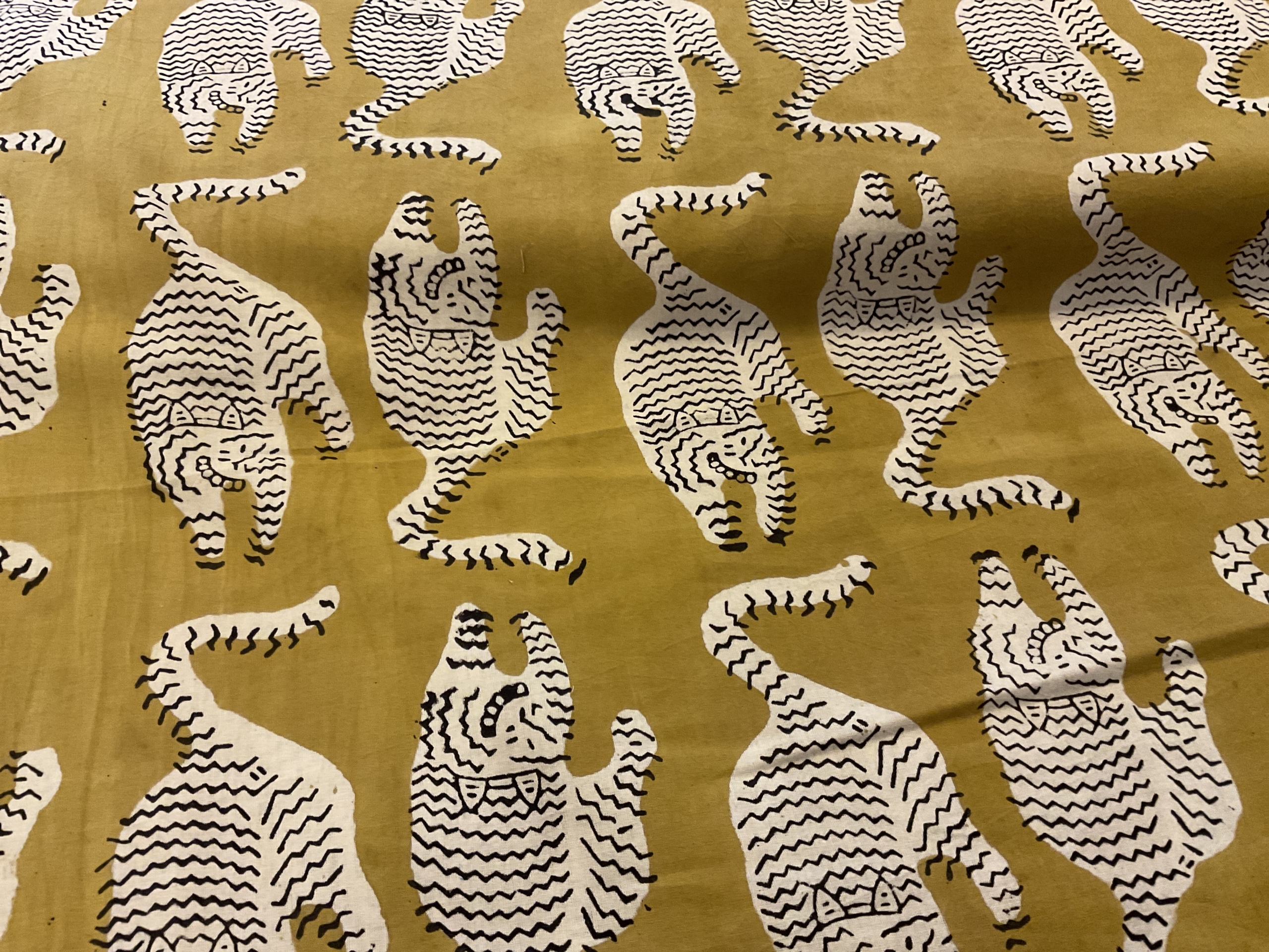 The cotton is hand printed in a small factory in Jaipur. it’s a rapid print using all natural dyes.